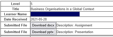 Once the grading has been completed, your grade will appear, along with the date it was marked, and by whom.
