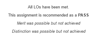 - Pass with Merit: If the assignment passes, and every merit question is a pass.