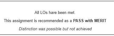 Below is an example of a message at the bottom of an assignment that passed. In this example, the assignment had merit and distinction questions, but the student did not answer them.